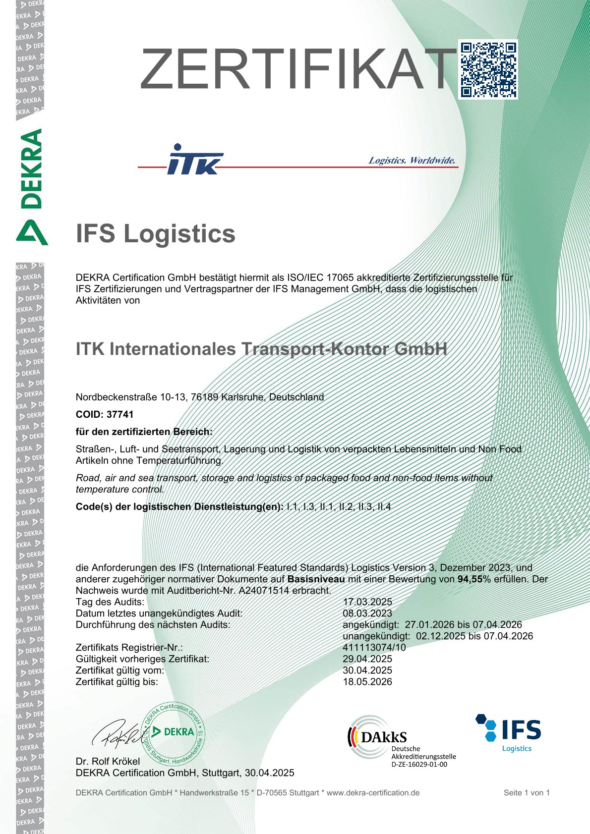 IFS Logistics Zertifikat